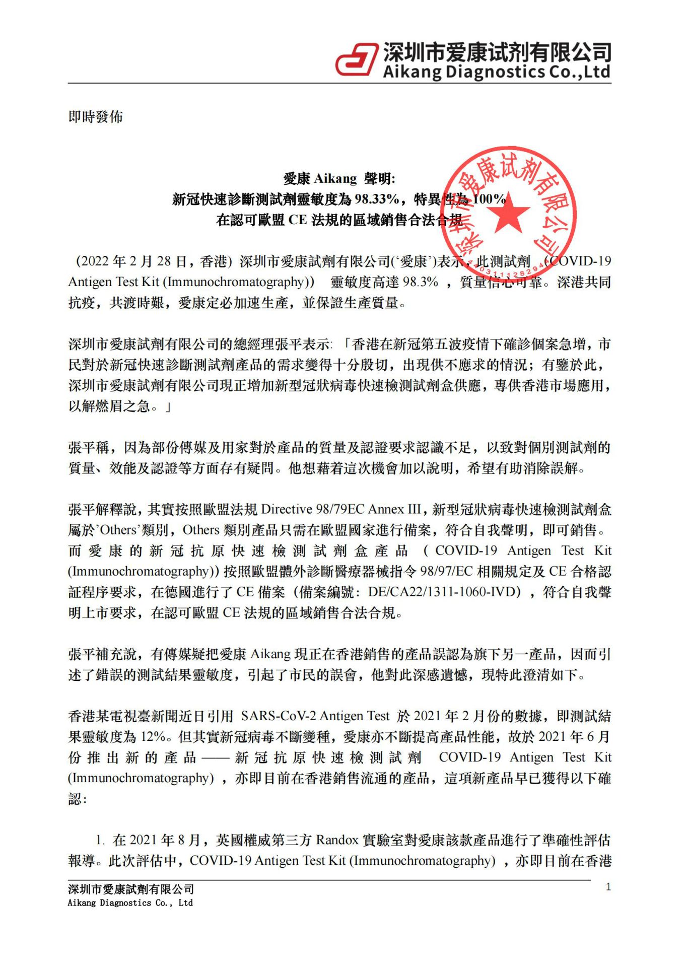 爱康试剂新冠试剂防伪声明